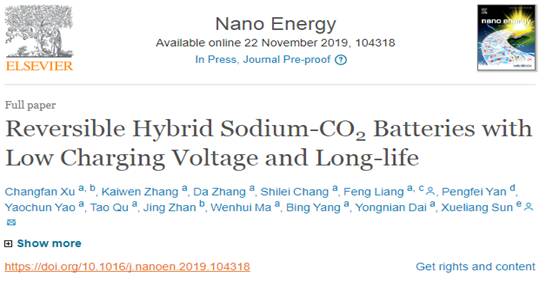 近日,澳门娱乐城官网 本科生徐昌藩同学在梁风教授指导下,在国际能源领域知名期刊《Nano Energy》(影响因子:15.5)上发表题为“Reversible Hybrid Sodium-CO2 Batteries with Low Charging Voltag...