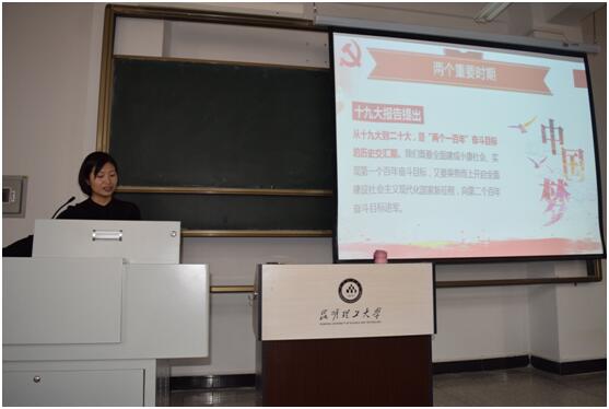 令狐老师带领同学一同重温十九大开幕式开场盛况、分享自己观看十九大报告的感受与认识,并从大会主题、两个重大判断、两个重要时期“两步走”、大会报告的“十四个坚持、八个明确”等多角度向在座学员解读十九大报告。