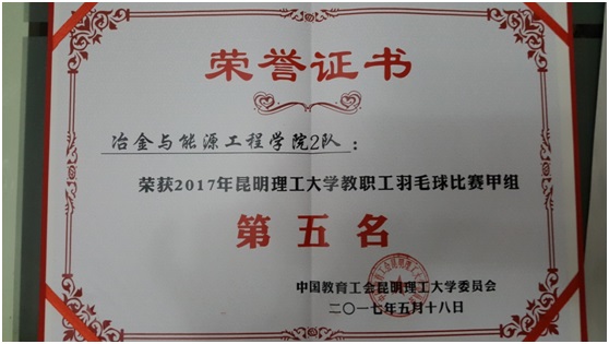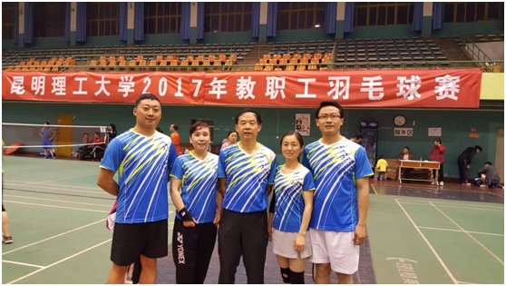 由四周前开始报名组队、组织训练、购比赛服……这周我校迎来了昆工参赛人数最多的球类赛事------羽毛球比赛。澳门娱乐城 组队5 个,共计28人参赛。各位老师在百忙中积极训练,比赛中奋勇拼博。最终三个队小组出线,两个队分别进入甲、乙组八强,都获得了各组第五名的好成绩。各位辛苦了!成绩喜人,队员们进步也很大,然相比其它学院差距仍是不小。希望大家为了自己的健康,也为了学院的荣誉,抽出时间加强锻炼。我们明年再来!