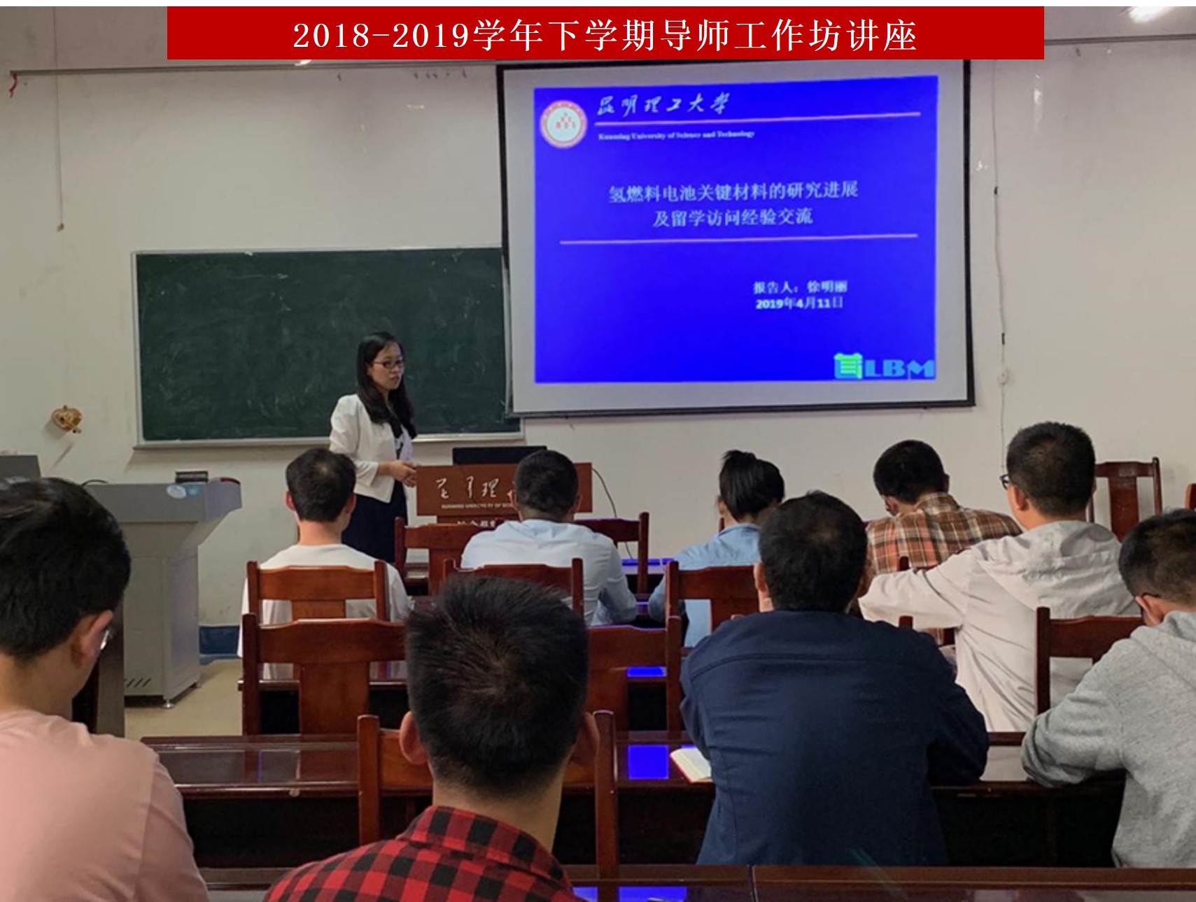 楼407教室作了题为“氢燃料电池关键材料的研究进展及留学访问经验交流”的导师工作坊讲座,全校60余名师生聆听了讲座。