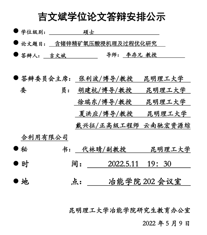 澳门娱乐城 硕士学位论文答辩安排公示——吉文斌——2022-05-11
