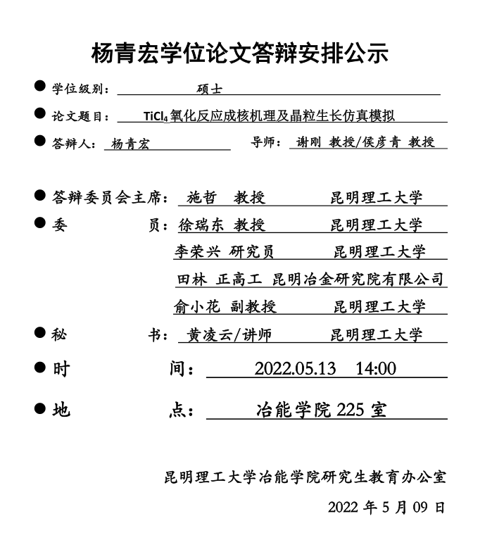 澳门娱乐城 硕士学位论文答辩安排公示-杨青宏-2022-05-13