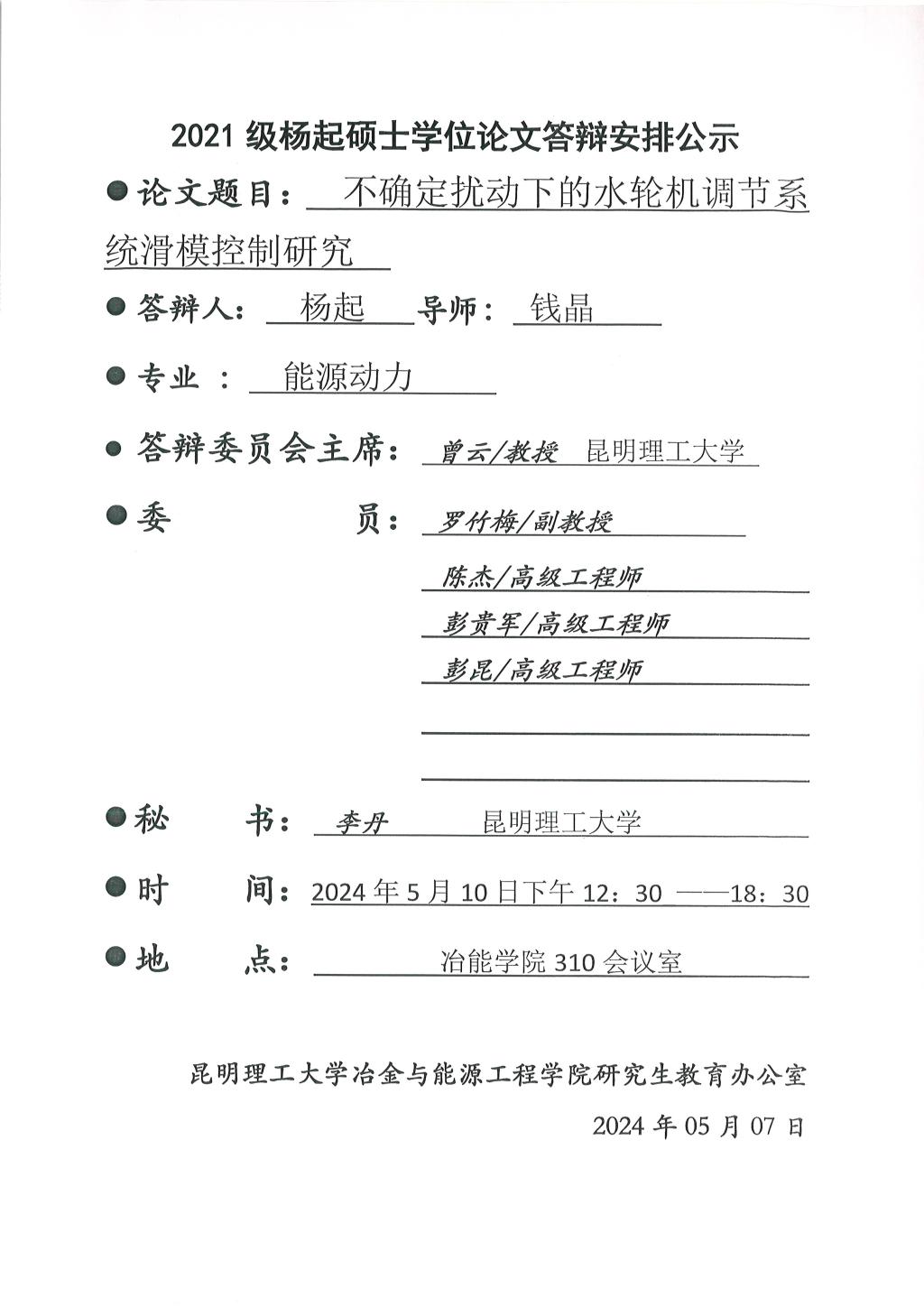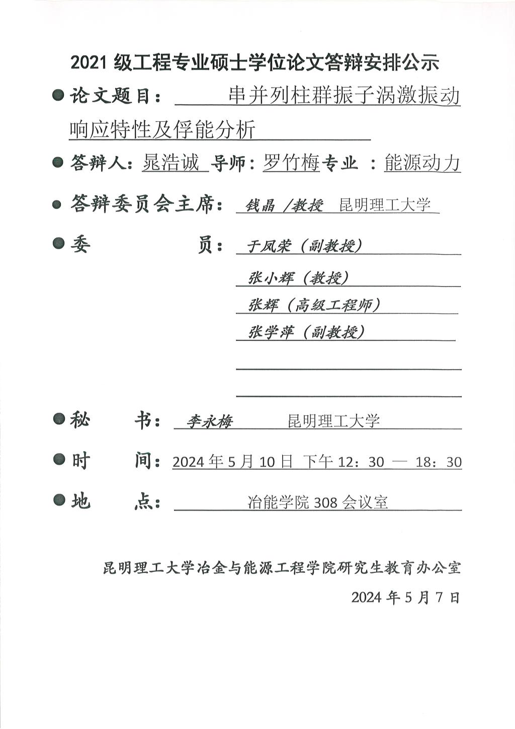 上一条:2024年硕士论文答辩公示——彭励怀,王安妮,刘力,孙滢博,黄先行,曹文博,王耀欢2024.5.13