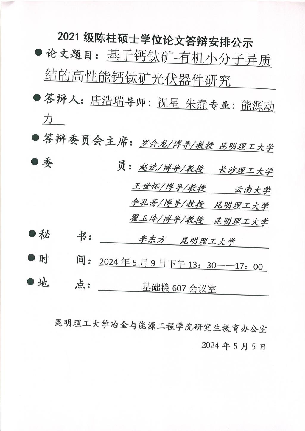 下一条:2024年硕士论文答辩公示——周子翔,黄吉祥,肖天烈2024.5.12