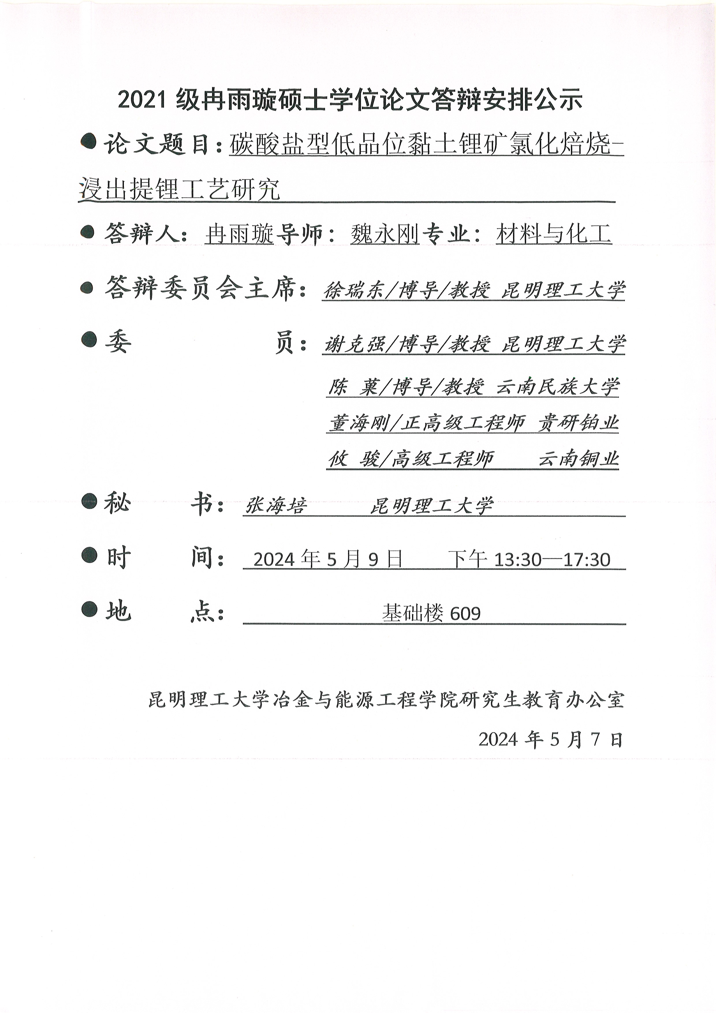 2024年硕士论文答辩公示——自高勇2024.5.12