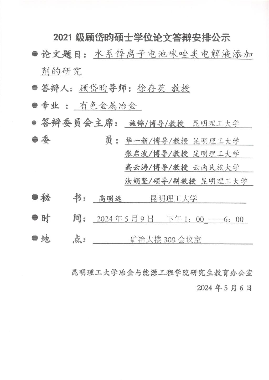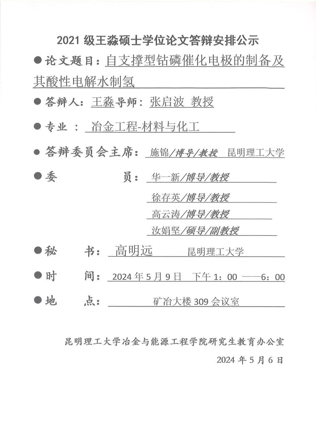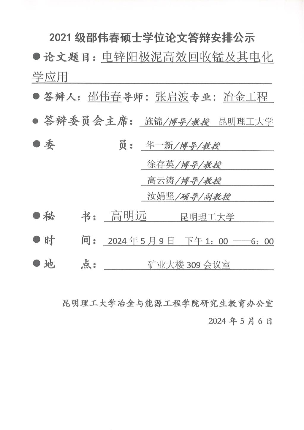 2024年硕士论文答辩公示——自高勇2024.5.12