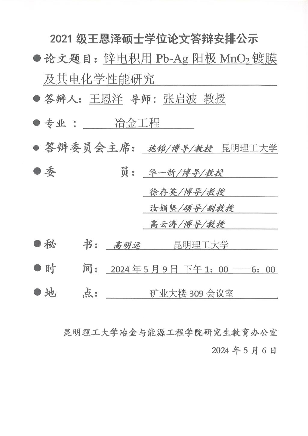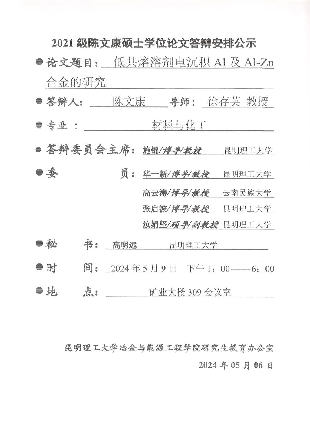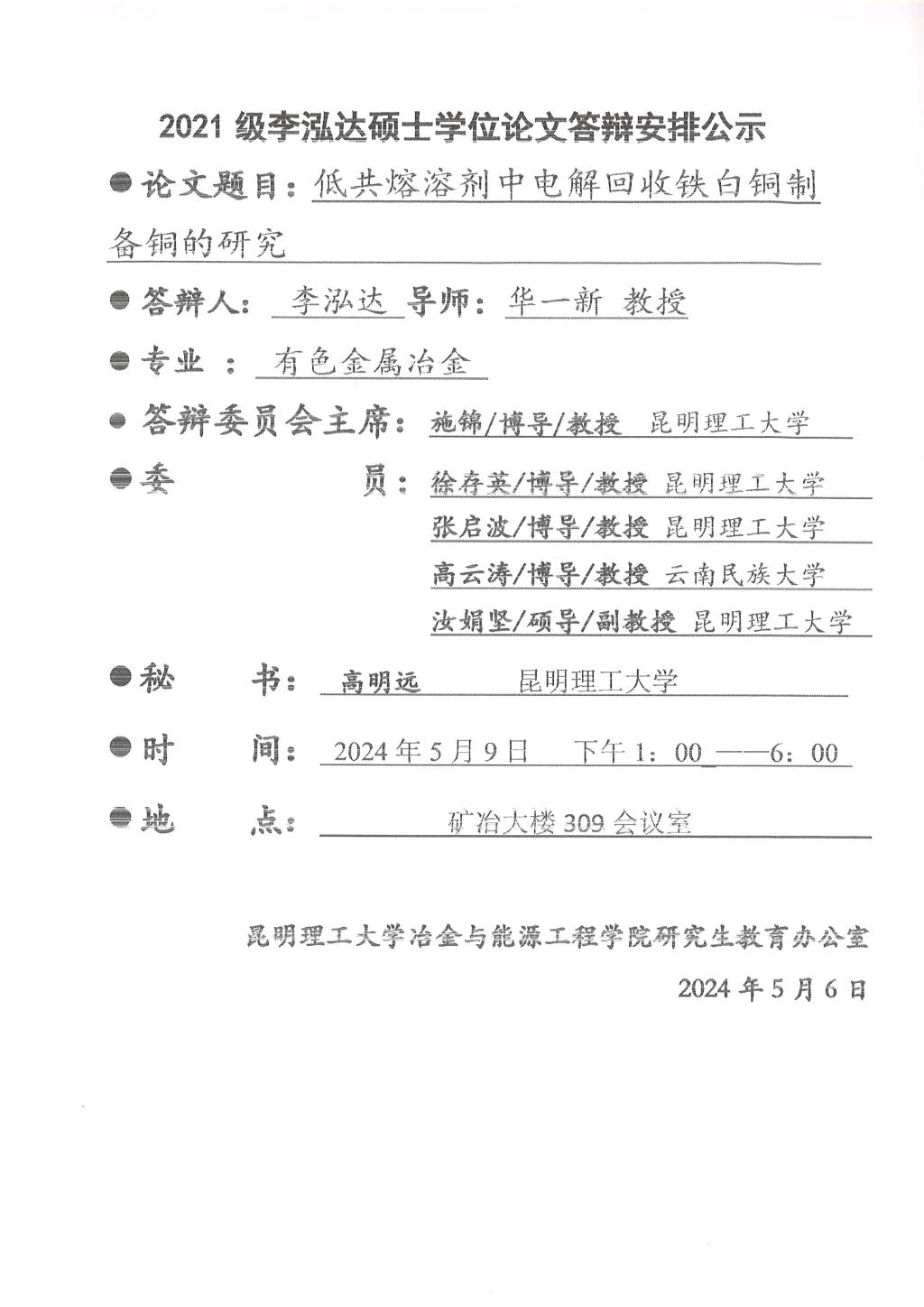 2024年硕士论文答辩公示——自高勇2024.5.12