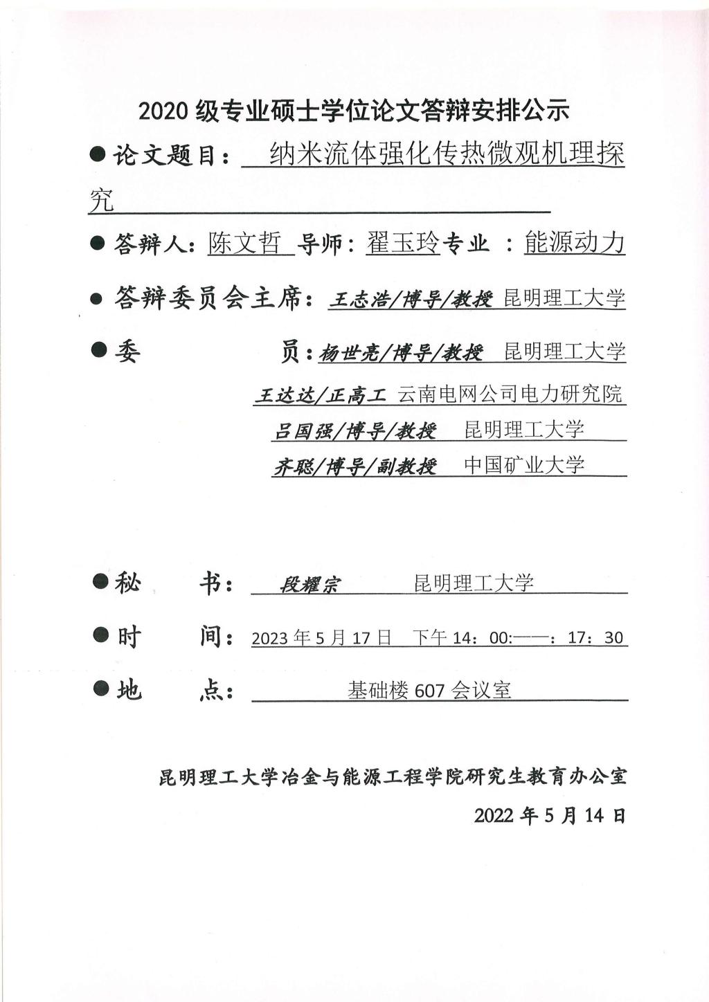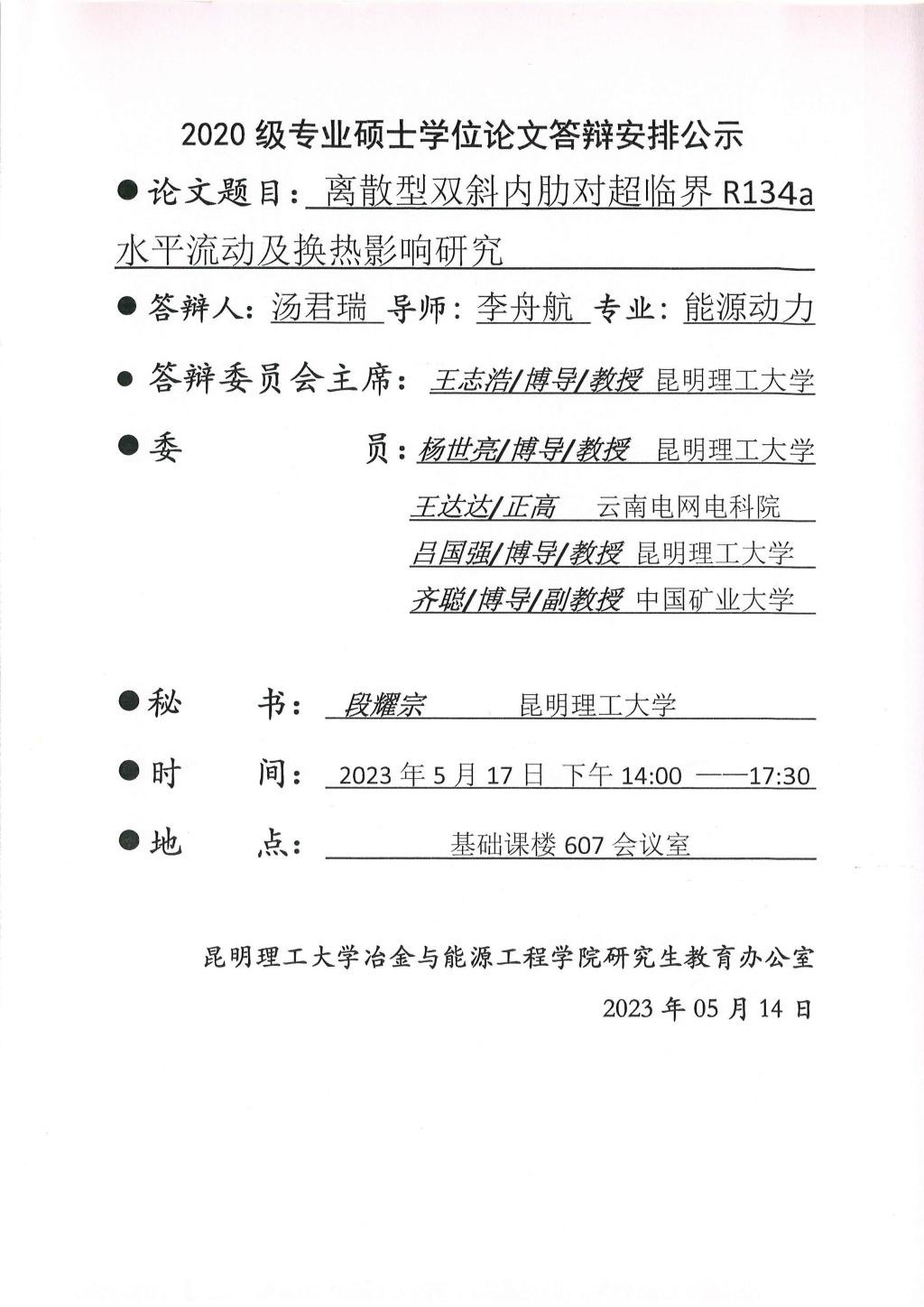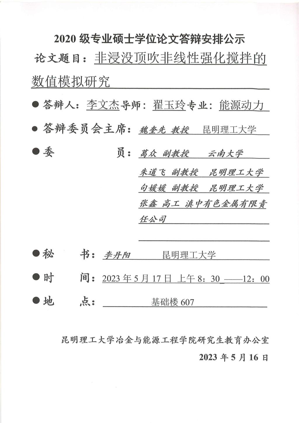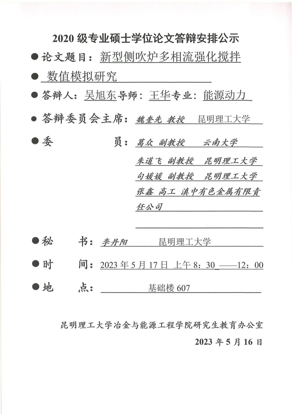 硕士学位论文答辩公示——吴旭东,吴京远,李文杰,廖亚楠,陈文哲,汤君瑞,申鑫,王江涛,周星,王恒,闫桂枝,史佳豪——2023.05.17