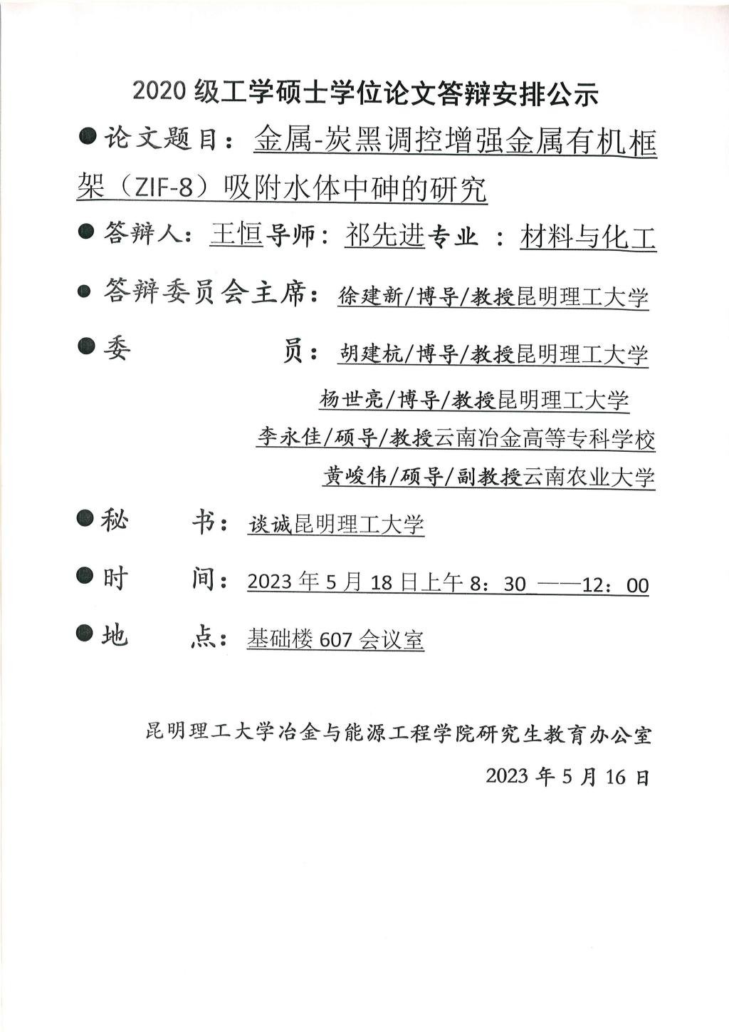 硕士学位论文答辩公示——崔丽雪,王天——2023.05.18