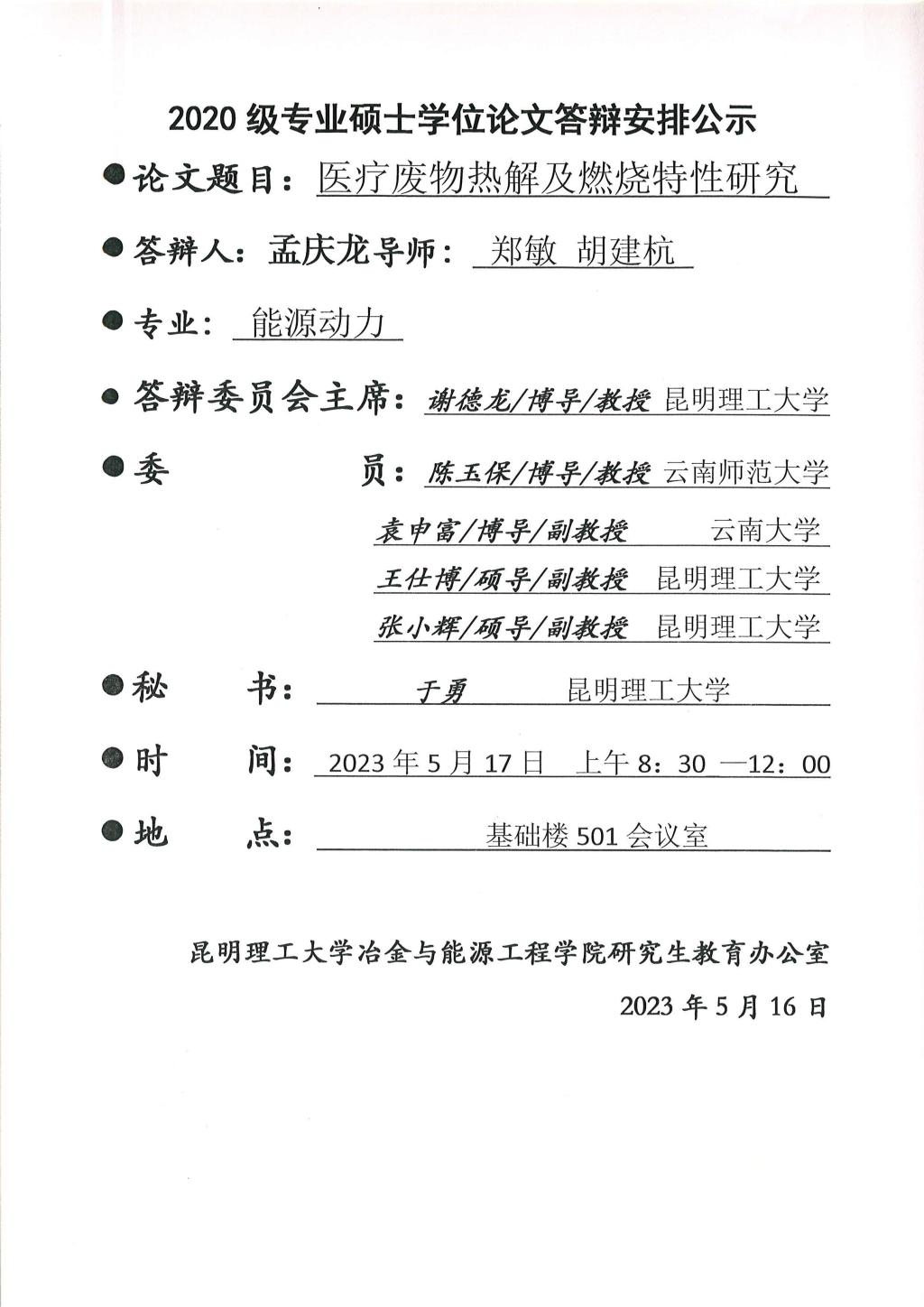 上一条:硕士学位论文答辩公示——吴旭东,吴京远,李文杰,廖亚楠,陈文哲,汤君瑞,申鑫,王江涛,周星,王恒,闫桂枝,史佳豪——2023.05.17
