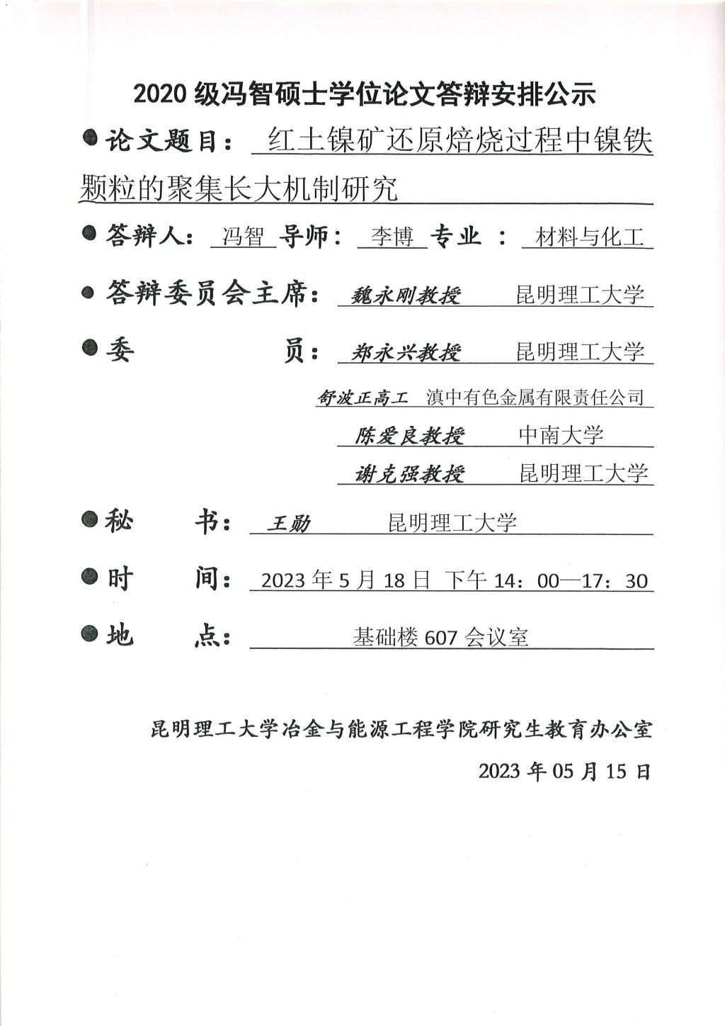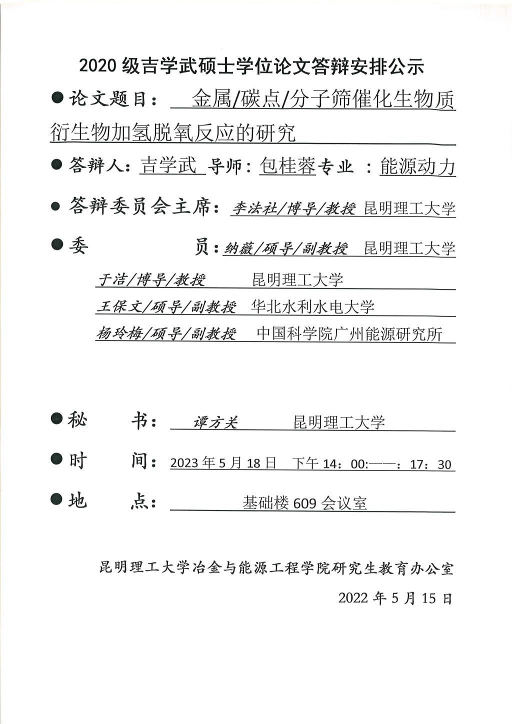 硕士学位论文答辩公示——孙赫,王仁毅,杜勃雨——2023.05.17