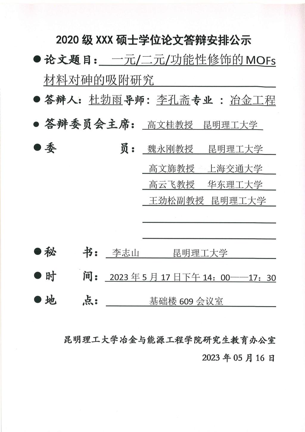 下一条:硕士学位论文答辩公示——何需要,郑玉曾,仝欣婷,冯睿,冯忠园——2023.05.18