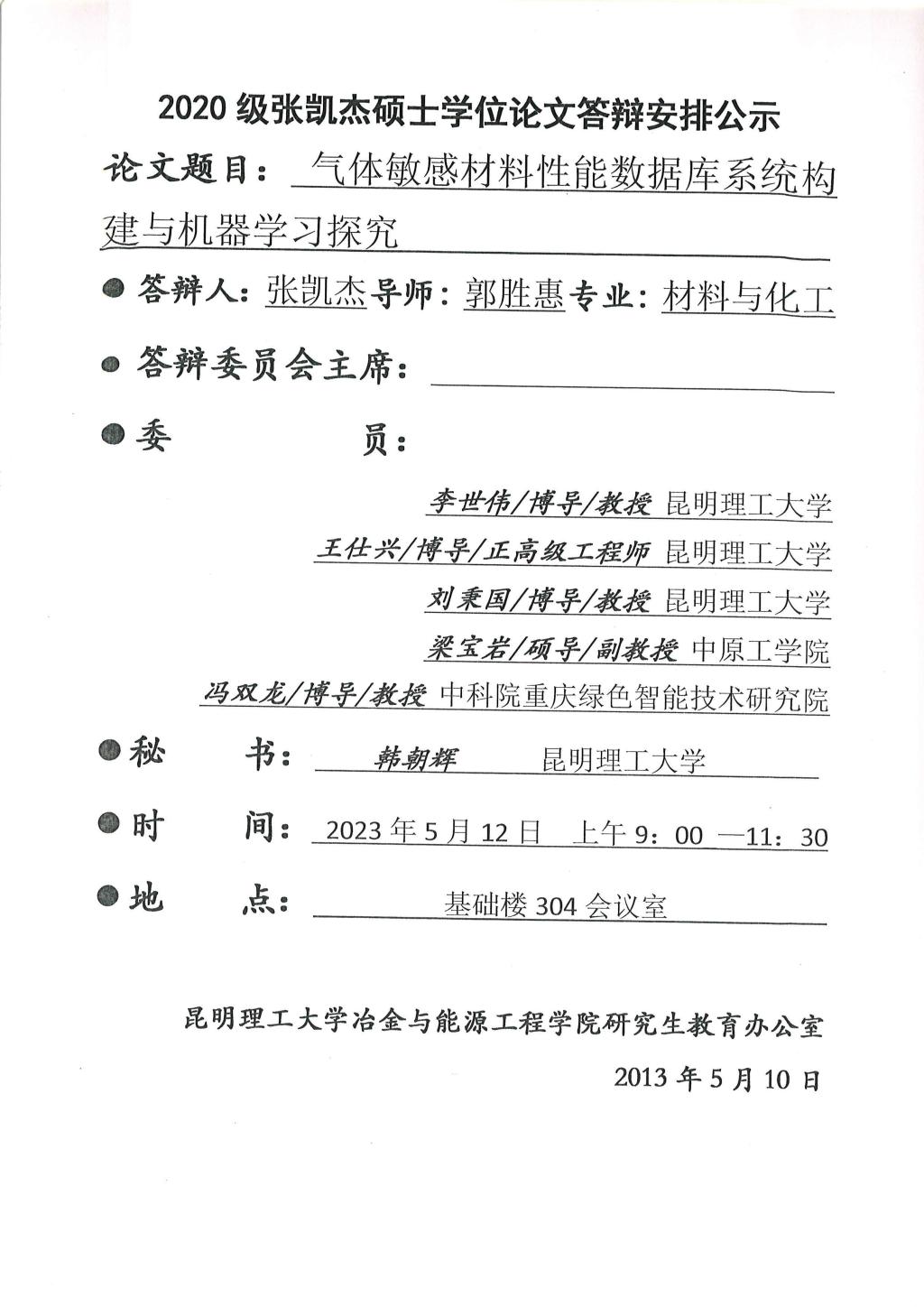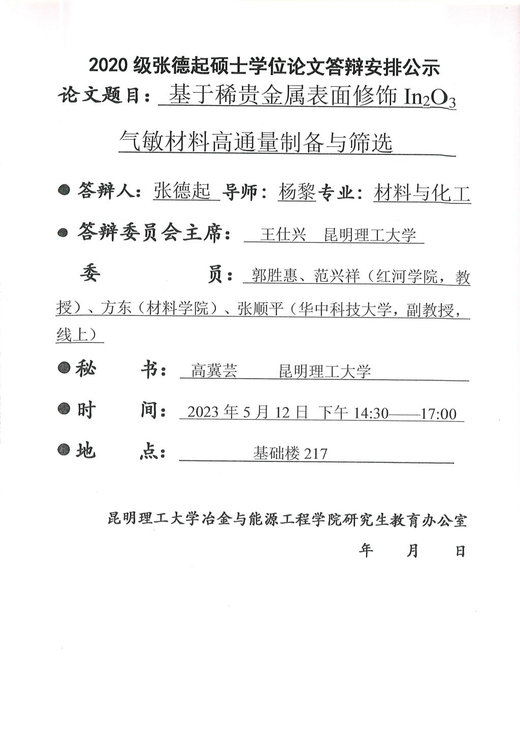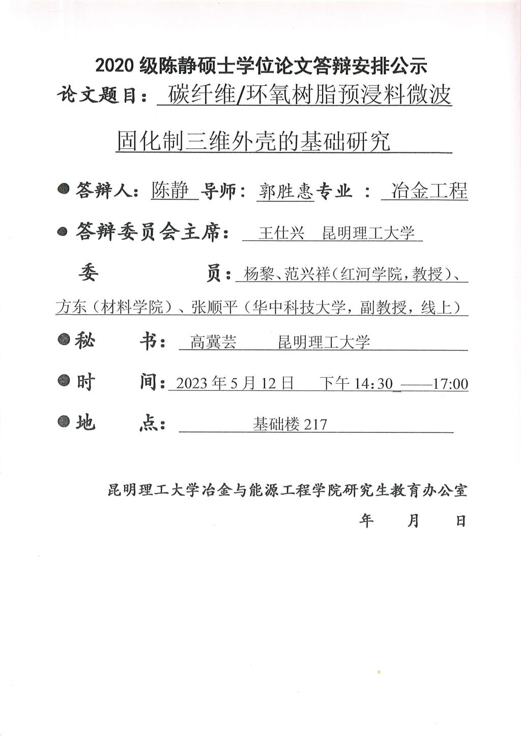 硕士学位论文答辩公示——陈静,张德起,管文翰,张凯杰,苏文婷,史书浩,麻艳佳——2023.05.12
