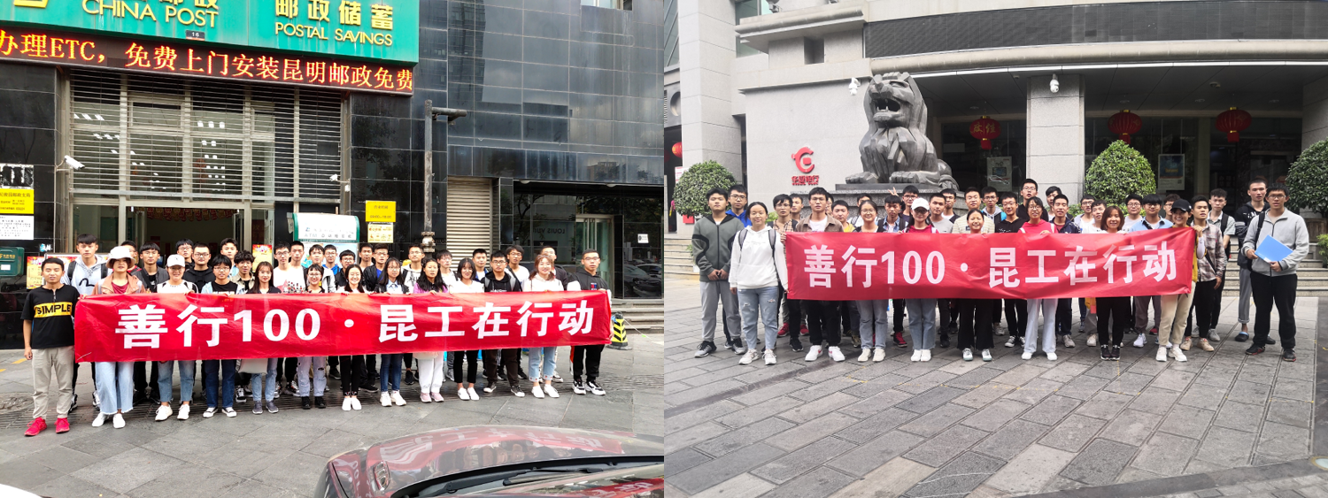 、材料科学与工程学院、法学院青年志愿者协会带领志愿者来到昆明市正义路邮局和世纪俊园邮局,开展“善行100”公益活动。此次活动的主题是“善行100,昆工在行动”,活动宗旨是通过善行传递百分百爱心,汇聚全社会的力量,关爱贫困地区的孩子,呼吁社会人士通过捐赠爱心包裹的形式,一对一地关爱贫困地区的孩子,改善孩子们的学习和生活条件。