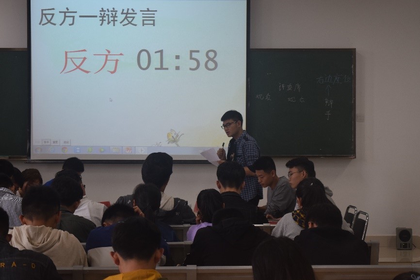 本次比赛分为上下两场,于上午9点到17点在公教楼202举行,此次比赛中,参赛队伍以班级为单位,每班四名队员。并且采用抽签的方式决定分组与辩题。辩论赛分为表达观点、双方质询、质询小结、自由辩论、总结陈词和评委点评六个环节。各方辩手都在比赛前做了充足的准备,在主持人宣布比赛开始后,选手们表达流畅,语言犀利,逻辑推理清晰,语调时而平和时而慷慨,精彩的对决赢得了观众的阵阵掌声。每场对决后评委们更是给出了专业的点评,并且给予选手们鼓励。赛末,综合评委的打分,本次辩论赛的第一名为能科191班,第二名为能动192班,第三名为冶金192班。比赛优秀选手为能动192陈昊,冶金191林汉宇,能科191刘泓汝。