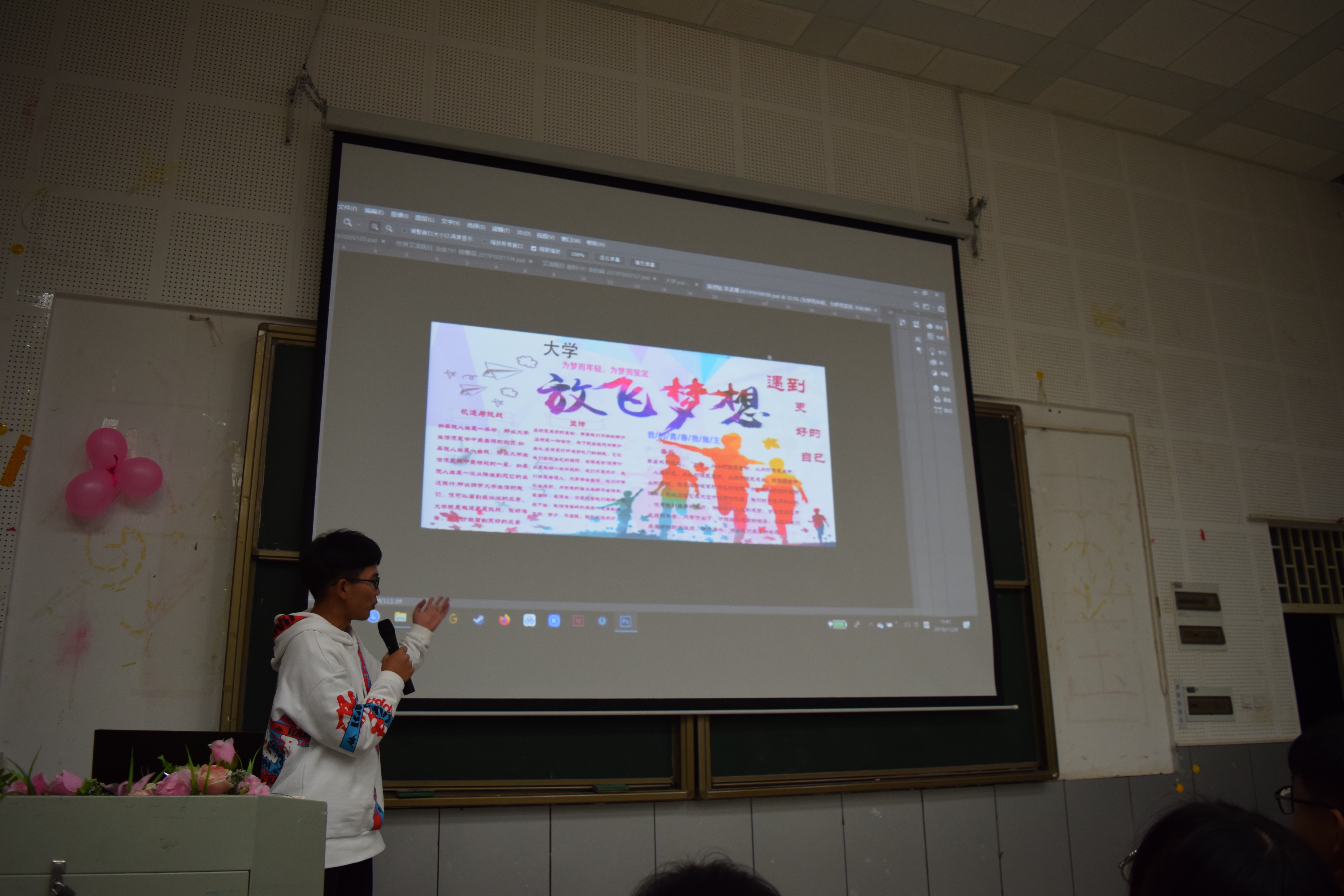 同学们在为期六周的PS技术学习以后,开始展示自己的学习成果。选手们跃跃欲试,以生动的语言,较为专业的术语介绍着自己的作品,以及自己的创作思维,台下不时响起热烈的掌声。由六个学院组成的评委团依次给各个选手们点评分析和打分,大赛全程秩序井然,按照流程顺利进行。体现了昆工青年学子相互鼓励、共同进步的优秀品质,同时也体现了同学们坚持学习的毅力。该活动在同学们热烈的掌声中圆满完成,其中夏志伟同学获得一等奖,路祥云、叶心竹两位同学获得二等奖,项东飞、吕锦江、栾均淼三位同学获得三等奖,获得优秀奖的是舒俊杰、彭小涛、丁蓉、杨馨蕊几位同学。