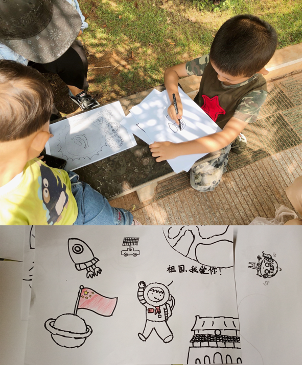 紧接着,我们沿着树荫掩映的小道进入了公园的中心,这里随处可见休闲玩耍的游人。在这里,我们首先开展了“画出心中的祖国”活动,邀请公园内的小朋友画出他们心中的祖国。另外,我们还开展了“爱国主义教育有奖竞答”活动,参与答题的人既可以学习与国家军事、政治、文化等相关的知识,又能得到我们精心准备的小礼品。两项活动都得到了小朋友及家长的认可。