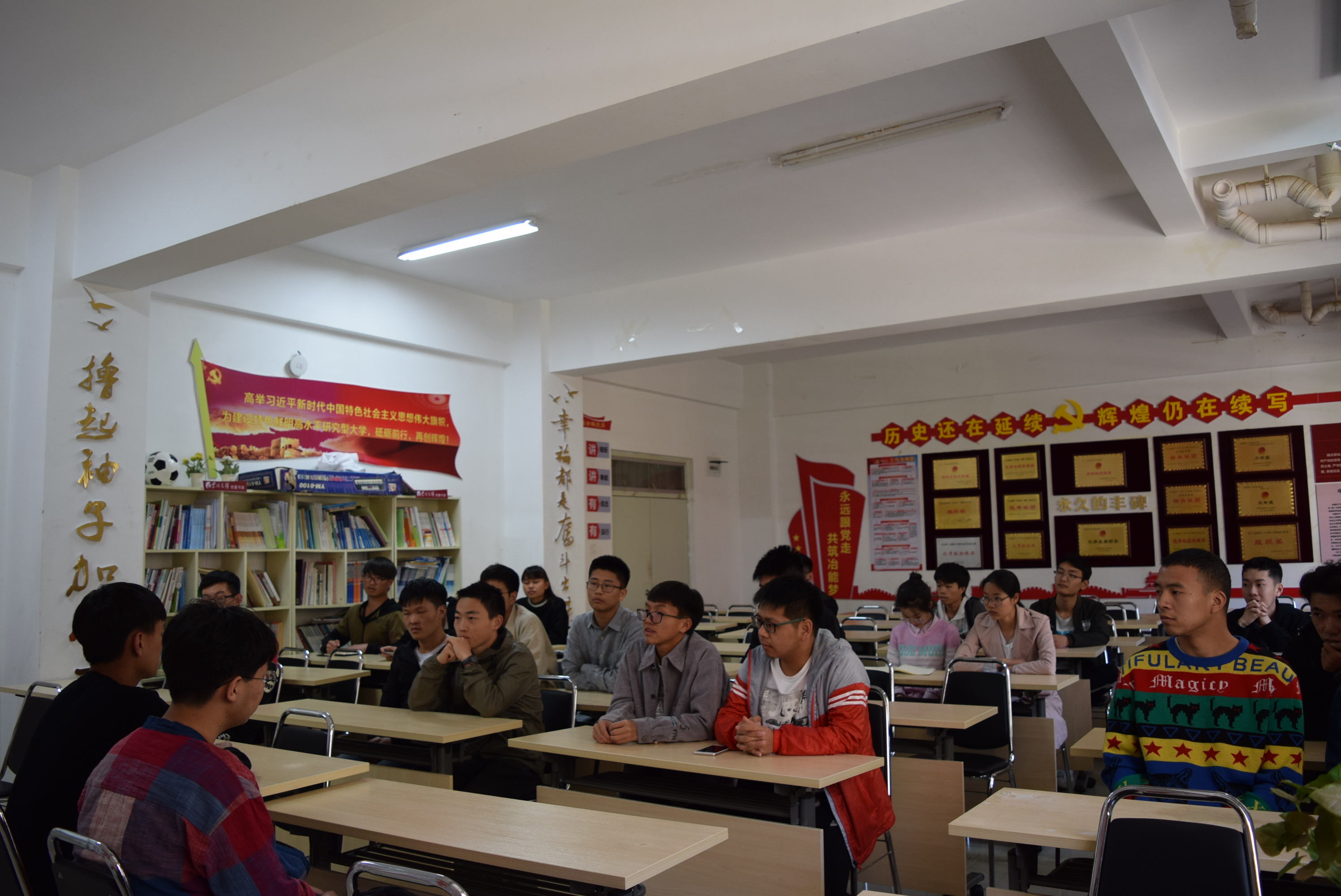 团委在憬园一栋学生活动室组织进行了优秀毕业生与低年级同学的交流座谈会。座谈会邀请了2015级优秀毕业生赵阳与张家润同学,他们二人均以优异的成绩考上中南大学的研究生。