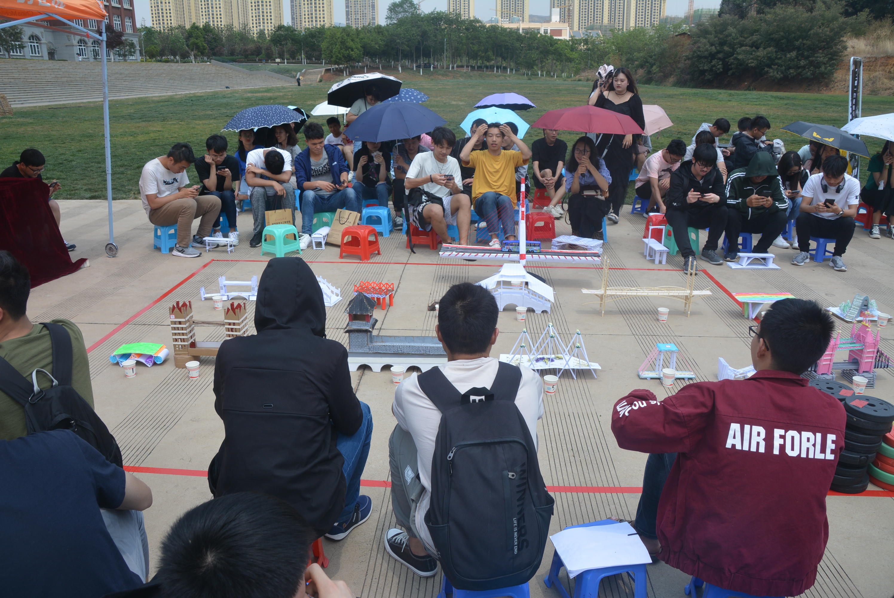 科技协会于呈贡校区公教楼门前草坪成功举办第七届“鎏型塑源”杯纸桥结构设计大赛。