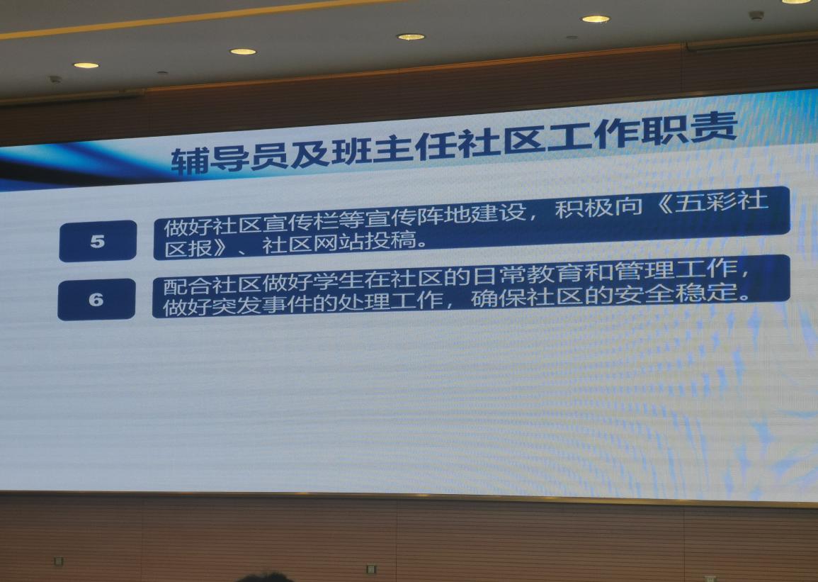 组织全院辅导员以及新生班主任参加辅导员、班主任岗位培训,明确辅导员及班主任社区工作职责。