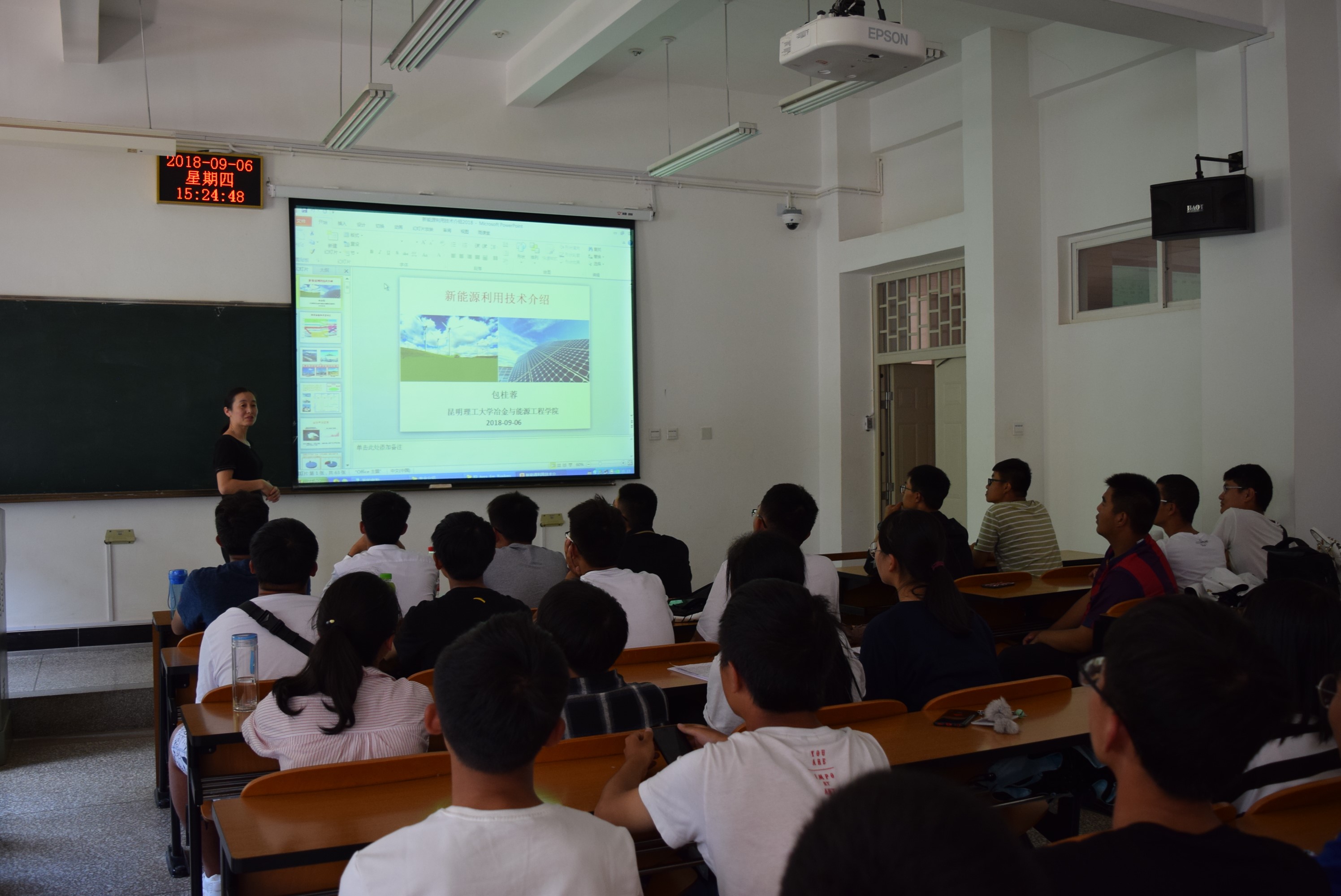 于西北B110教室开展了新能源科学与工程专业介绍会,本次介绍会由能科系主任包桂蓉老师担任主讲人,18级能科专业新生参加本次专业介绍会。