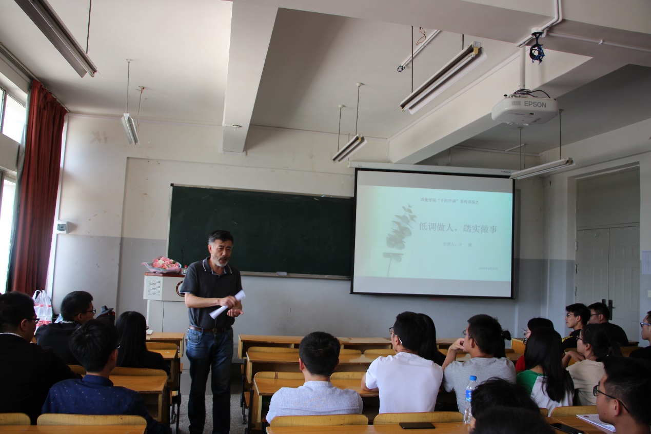 的文化,在走出学校这所“象牙塔”之前给毕业生们再上一课,帮助他们更好地适应社会,树立好自己的三观,把握好人生的大方向,学院特此邀请到了退休教授王煜老师为大家开讲。讲座在主楼412举行,学院学工办辅导员李飞霏以及100余名学生参加了讲座。