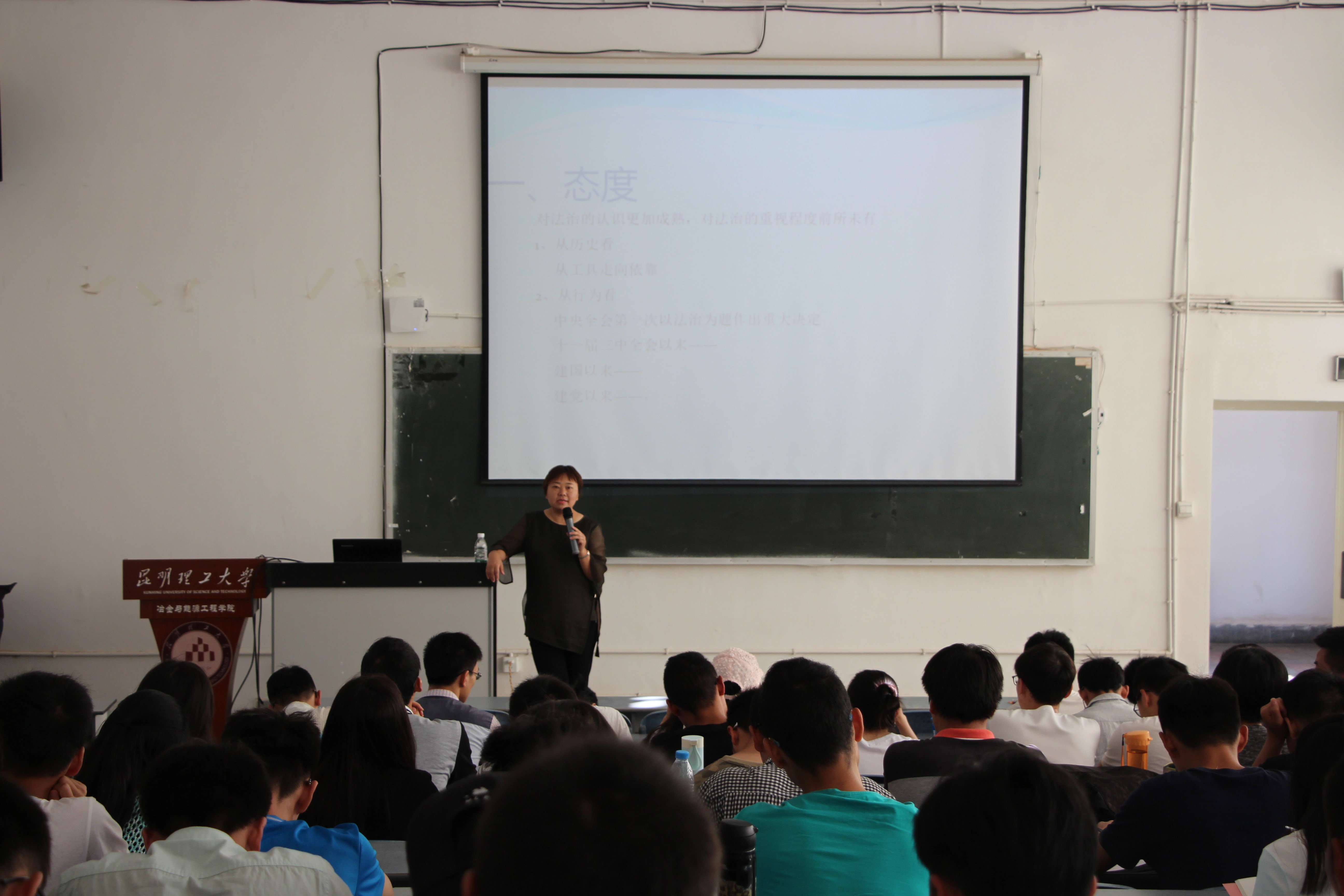 邀请了昆明理工大学马克思主义学院郑晓琴副教授在莲华校区基础楼200报告厅,为学院全体学生党员、发展对象和学生干部上了题为《全面依法治国,共建和谐社会》的党课。学院部分支部书记、辅导员以及全体学生党员和学生干部共计150余人参加了学习。