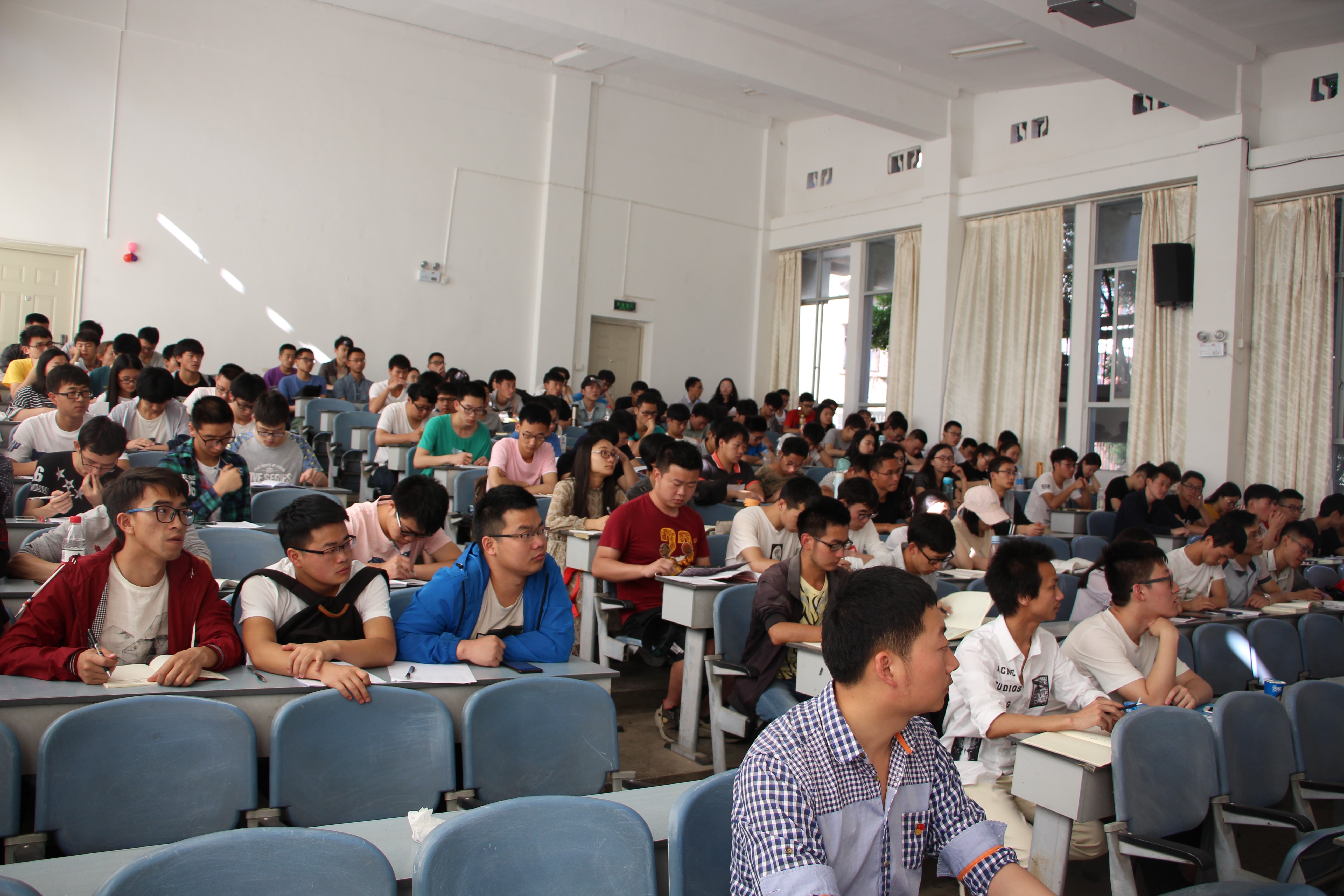 首先,郑老师回顾了十八届四中全会关于依法治国的内容和指导思想,通过自身丰富的教学、工作经历,告诉大家国家建立完善的法律体系,公民提高法律素养的重要性。接着,郑老师从我国目前所面临的建设任务、稳定任务、风险挑战等问题入手,解读国家政策,通过实例阐述了国家正在加大经济、政治改革的力度。郑老师指出当今社会人心的浮躁,造成了社会的许多不安定因素,再次说明稳定任务的重要性,而要维持稳定的重器就是法律。最后,郑老师强调作为大学生绝对不犯原则性错误,要踏实诚信。