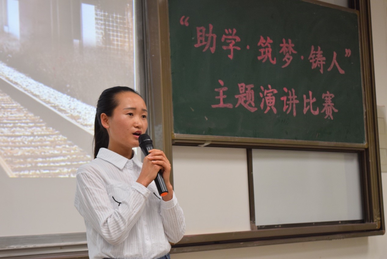 比赛开始之前,会场播放着温馨感人的暖场音乐,烘托着现场的温馨气氛。每个选手都围绕着“助学,筑梦,铸人”三个主题发表了自己的演讲。在演讲过程中,我们听到了感人肺腑的故事,了解了他们曲折的求学经历,还有他们奋发向上为出人头地所做出的努力。每一位演讲者都是泛着泪花完成了演讲,这种超强的感染力使得台下的观众都忍不住流下了眼泪。他们的演讲中表露出的更多的是一种感恩,感恩父母,感恩党和国家!父母养育了他们,抚养他们长大成人!在党和国家的帮助下,他们战胜了艰苦的外在条件,今天才能够在昆明理工大学安心地学习。活动最后,冶金工程卓越班的查云春同学以精彩的演讲征服了评委与观众,获得了一等奖。最后席风硕老师代表评委团对此次比赛发表总结讲话。