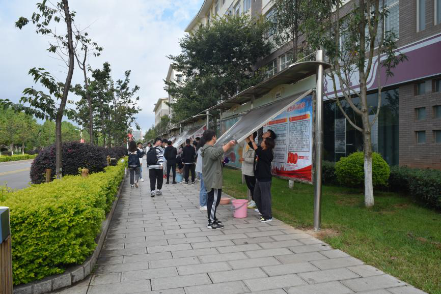 、电力工程学院以及机电工程学院青年志愿者协会在昆明理工大学呈贡校区樱花大道海报宣传栏联合举办“校园卫生”志愿活动。