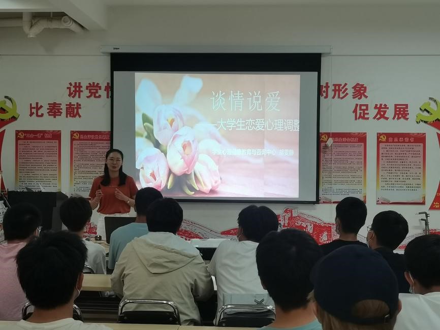 在憬园1138活动室开展“子约开讲”系列讲座。本期讲座邀请到昆明理工大学学生心理健康教育与咨询中心专职教师胡雯静作为主讲人,讲座主题为《谈情说爱——大学生恋爱心理调整》,44名同学参加本次讲座。