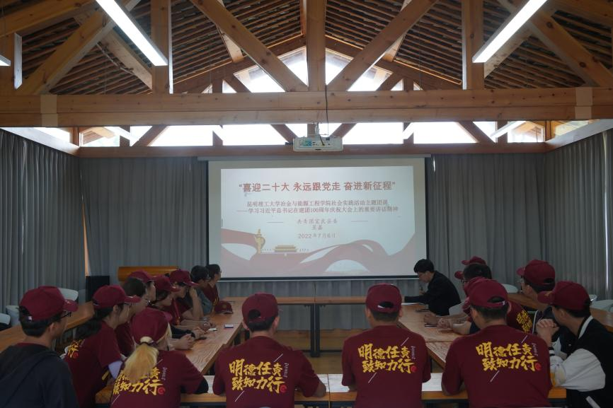 2022年暑期“三下乡”社会实践团队与宜良县团委联合开展“喜迎二十大,永远跟党走,奋进新征程”主题团课。