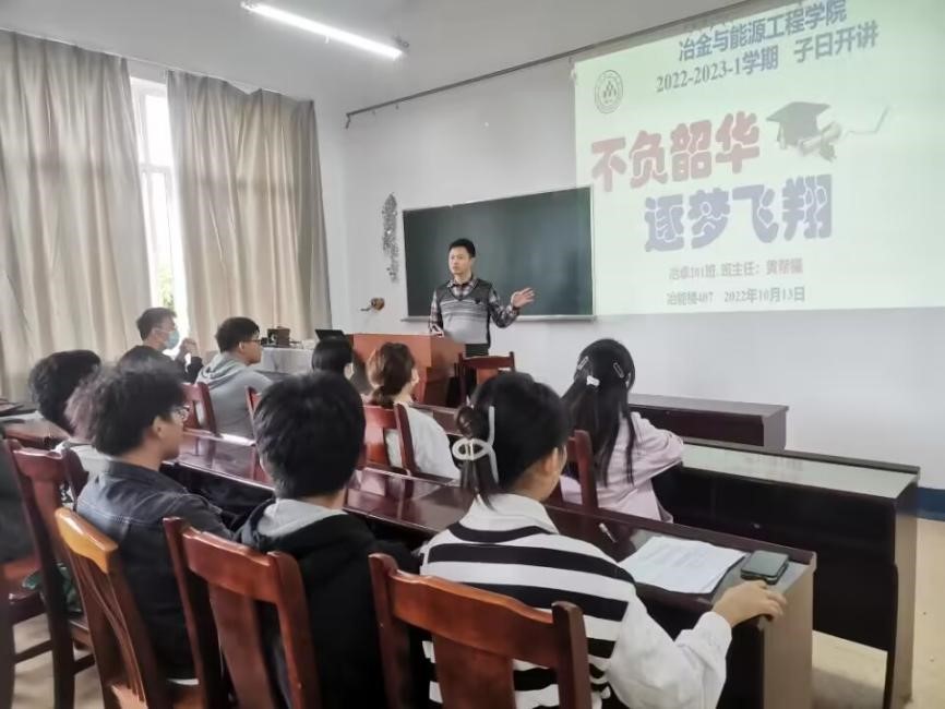 楼407教室举办“子约开讲”系列活动之“不负韶华,逐梦飞翔”讲座。本期讲座由冶卓201班班主任黄帮福担任主讲嘉宾,70余名本科生参加讲座。