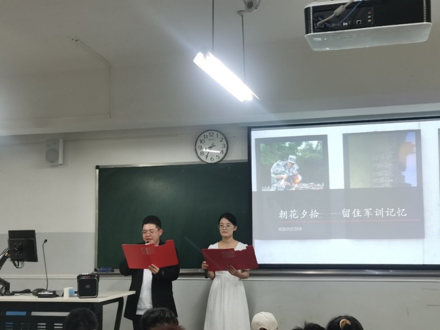 在主楼418教室开展“朝花夕拾——留住军训记忆”军训风采展示活动。部分团学干部及2022级各班级代表共计70余人参加活动。本次活动由王柏然和荆安琪同学主持。