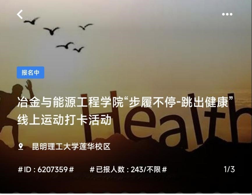 开展“步履不停——跳出健康”主题健康打卡活动,此次活动旨在引导同学们加强体育锻炼,养成运动习惯、增强身体素质。