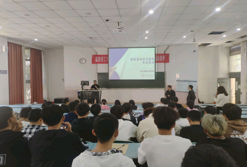 新能源材料与器件专业在主楼108教室召开专业宣讲会,系主任姚耀春老师、系副主任张雁南老师、张少泽老师、能材2022级班主任李银老师和专业全体新生参加了本次会议。
