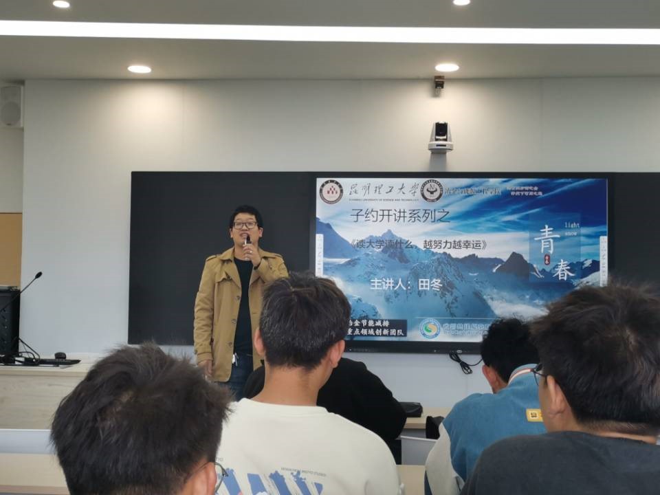 在主教学楼612教室举办“子约开讲”系列活动之“读大学读什么,越努力越幸运”主题讲座。本次讲座邀请了冶金224班班主任田冬为主讲嘉宾,共计80名同学参与讲座。