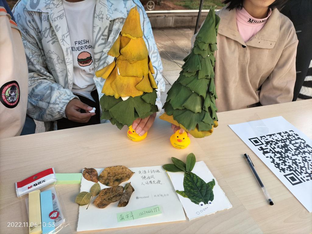 活动当天,同学们纷纷带上精心挑选的树叶制作成的风景画、小动物和日常生活用品模型等各式各样的作品,写下鼓励的话语,一字一句中均是满满的暖心祝福。活动结束后,工作人员将一幅幅暖心作品送至自习室给正在考研冲刺的学长学姐们,为他们加油打气。