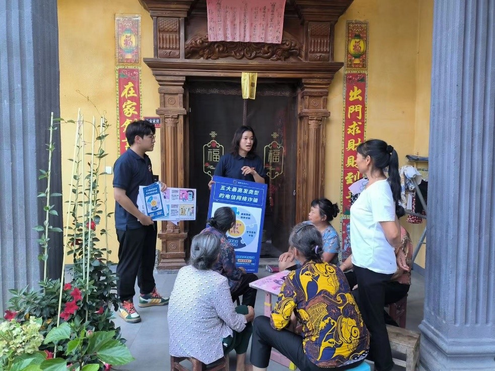 实践团队将电信诈骗真实案例、诈骗手段、预防知识、报警电话等内容,用通俗易懂的语言和图文并茂的形式编制成宣传手册、海报等,在人流密集区域向群众发放宣传资料。同时,实践团队在学习调研期间,采取走村入户,采取唠家常、以案说法等方式,“零距离”向群众宣传近期典型诈骗案件和作案特点方式等,并发放防诈骗宣传资料,提醒群众遇事思考、多与家人商量,天下没有免费的午餐,不要贪图小便宜,但凡遇到涉及钱财及个人银行卡等信息要做到不轻信,不透露、不转账,及时报警。同时公布电信诈骗犯罪分子的惯用伎俩、作案方式及报警方式,引导群众互相“扩散”防骗知识。