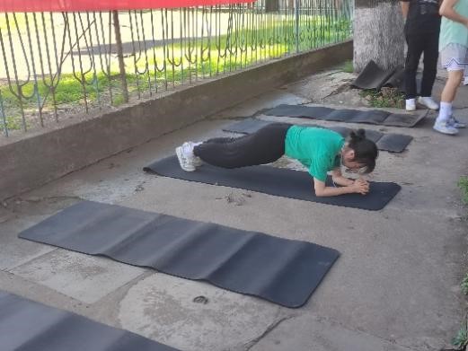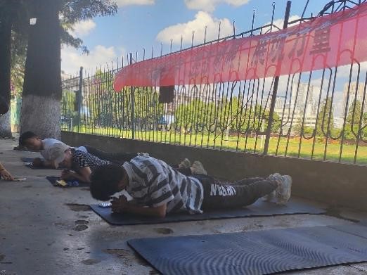 本次比赛采用单人竞技,五人一组的方式进行,主要考量学生平板支撑的标准姿势与耐力。下午2点30分,参赛学生怀着激动的心情迈入赛场。依照本次比赛规则,参赛学生以俯卧撑的姿势作为平板支撑的起始动作,随后前臂向下弯曲紧贴地面,手肘平贴地面,脚趾微微弯曲,伸直身体,收紧腹部,最终以参赛学生坚持的时间为比赛成绩。
