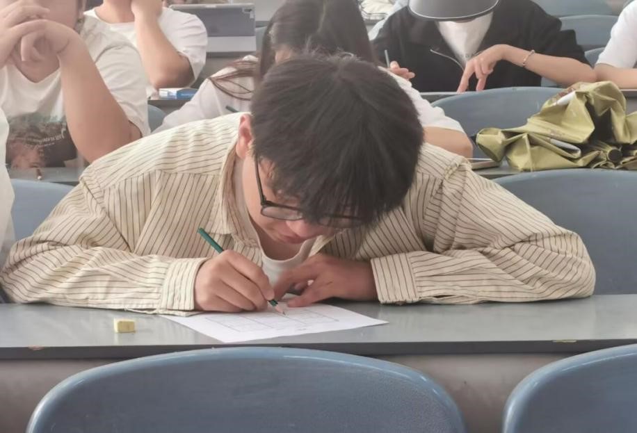 数独是一种基于数字和逻辑规则的消遣娱乐游戏,有助于提高逻辑推理能力,增强观察力和专注力。在本次竞赛中,同学们在九宫格上探索奥妙,周密思量,展开激烈的智力比拼。线格之间,大千世界,横纵之间,变化万千。活动现场,有人掩卷沉思,也有人奋笔疾书,有人信心满满,也有人焦灼犹豫……思维的火花在脑海中碰撞,线格间的数字逻辑被同学们反复推演。安静的教室中,同学们充分展现出认真和坚持的魅力。