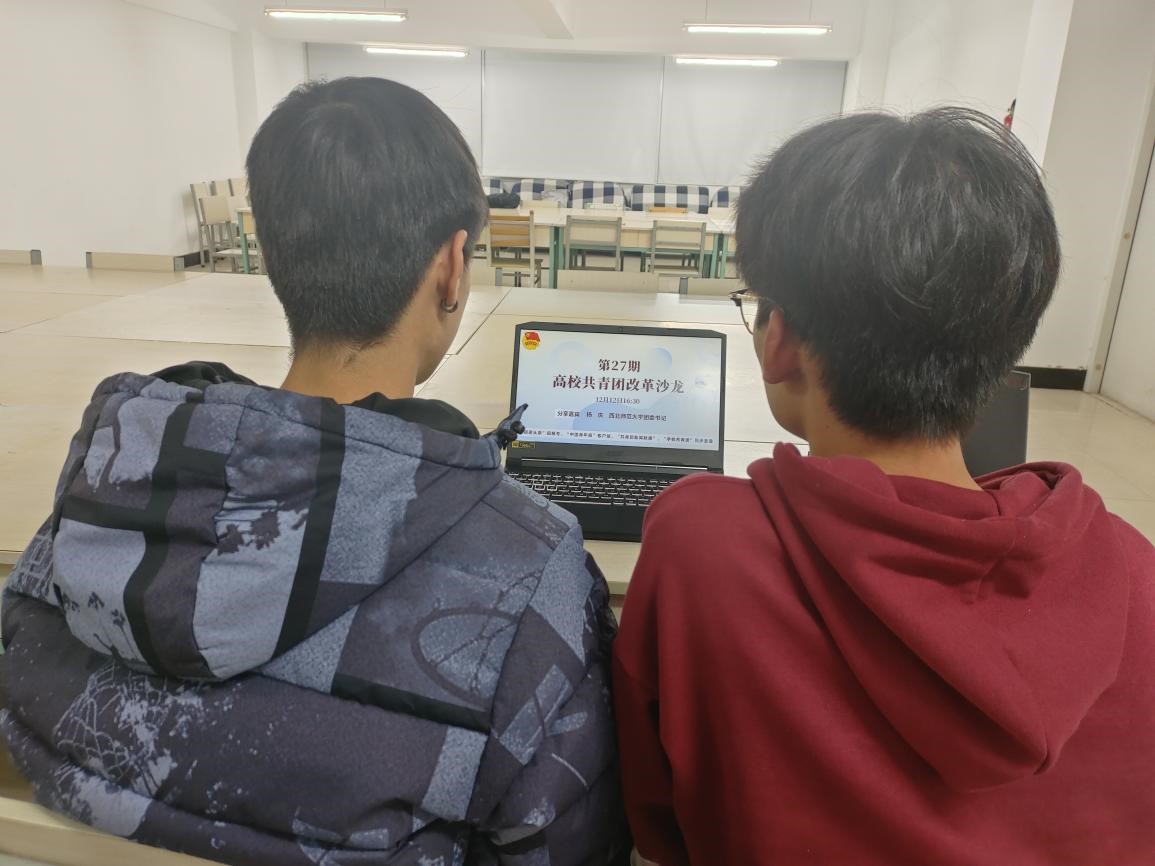 组织团学骨干、青马工程学员线上观看学习由共青团中央主办的“高校共青团改革沙龙”第27期直播。