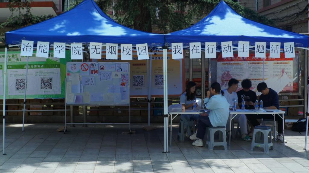 活动包含禁烟主题墙和禁烟公益视频录制两个部分。同学们将自己制作的禁烟标语或海报带至活动地点,由工作人员进行展览,并且在活动现场录制禁烟视频。同学们踊跃参与,不仅绘制了精美的海报,还认真录制了公益视频,有人宣读禁烟标语,也有人录制禁烟手势。一张张海报,传递的是“无烟校园”的美好愿想;一段段视频,汇聚的是“从我做起”的坚定承诺。