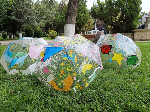 本次活动一共分为雨伞彩绘和风车DIY两个模块。活动现场,同学们根据自己的想象自由发挥,使用颜料以及其他花草树叶对透明雨伞或风车进行彩绘和装饰。本次活动形式积极有趣,同学们踊跃参与,反响热烈。大家纷纷开动脑筋,发挥想象力和创造力,制作了许多漂亮可爱、各具特色的作品。