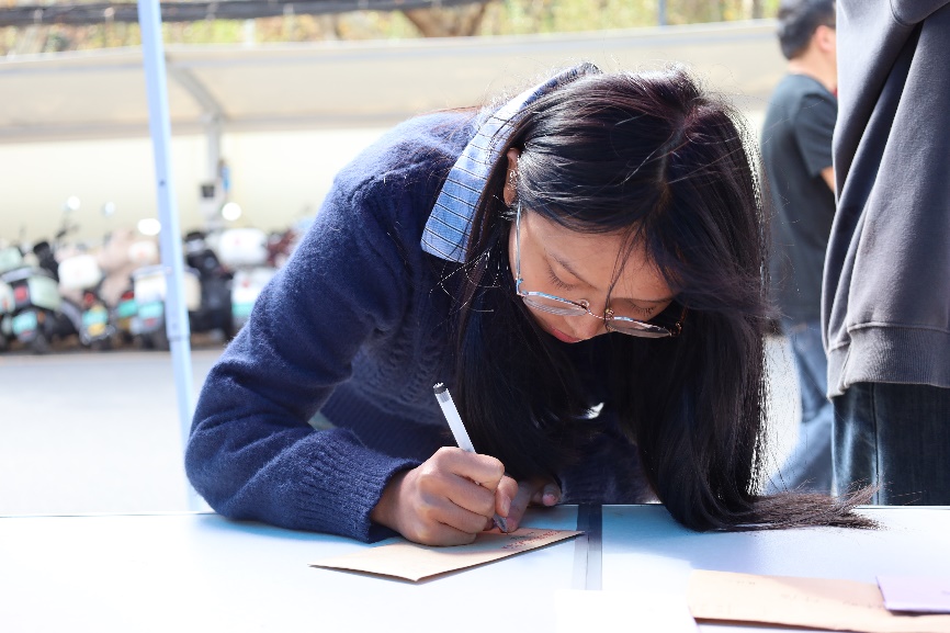 本次活动共分为四个模块,分别为“感恩篇”“规划篇”“引航篇”与“榜样篇”。同学们自行选择一个模块,根据要求完成自己的信封,并将其交予工作人员。在本次活动中,同学们热情高涨,积极书写并递交自己的信封。一封封书信的递交,或表达着对亲人、伙伴和老师一路陪伴的感恩,或是对自己充满希望的未来的展望,又或者是学长学姐对学弟学妹们衷心的祝福和正确的指引,无论是哪一种情感的表达,都体现了同学们的真诚与热切,同时也使文字脱离了机械和无情的标签,让爱在人与人之间更广泛地传播。