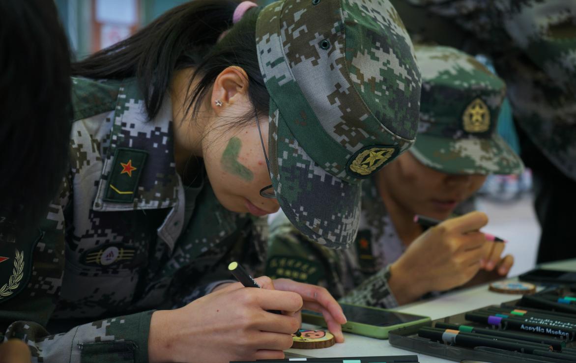 活动现场,同学们以废弃木材为创作载体,将环保理念融入创作,把废旧木料转化为承载创意与情感的年轮挂件。工作人员首先为同学们讲解了制作年轮挂件的流程、技巧以及其中蕴含的匠心精神和环保理念。随后,同学们手持缤纷的画笔,怀着对自然的敬畏之心,在木材切片绘制自己喜爱的图案、书写各种创意字体。绘制完成后,可选用工作人员提供的挂绳等材料进行装饰,完成挂件制作。从构思设计到绘画创作,从装饰美化到成品完成,每一个环节都凝聚着同学们的耐心与专注,挂件上的精美图案生动体现出同学们对创作的热爱和对匠心精神的传承与实践。