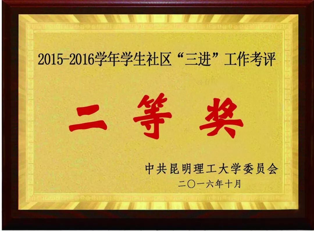 昆明理工大学2015-2016学年学生社区“三进”工作考评“二等奖”