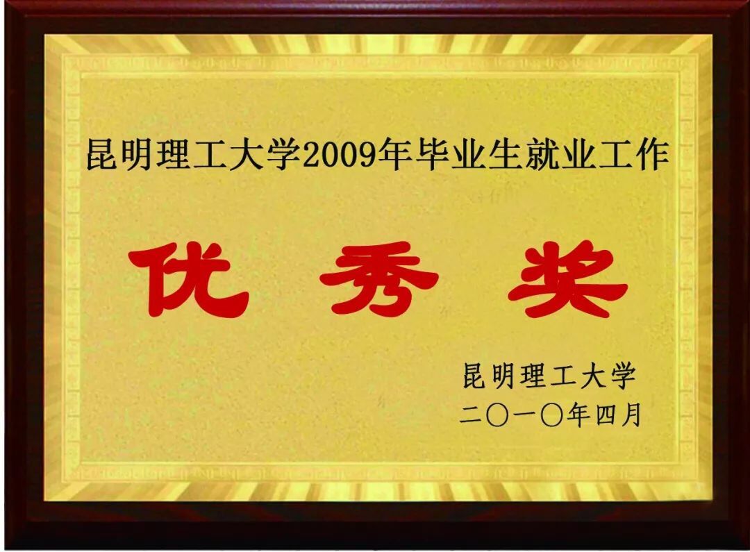 昆明理工大学2009年毕业生就业工作“优秀奖”