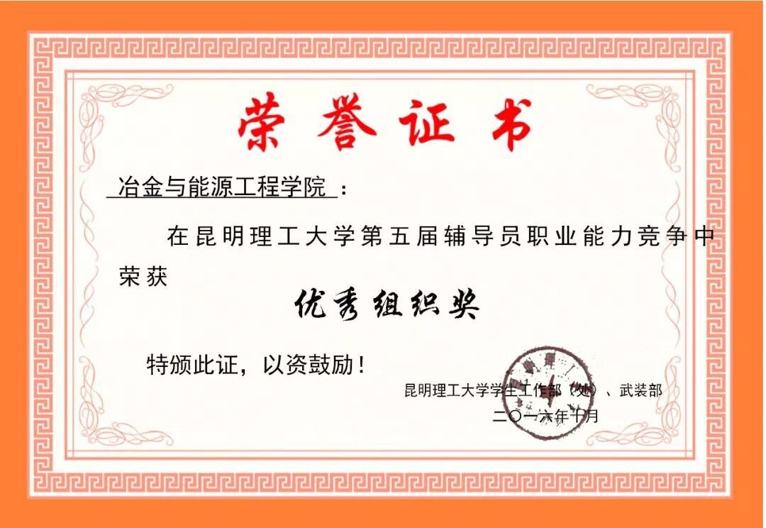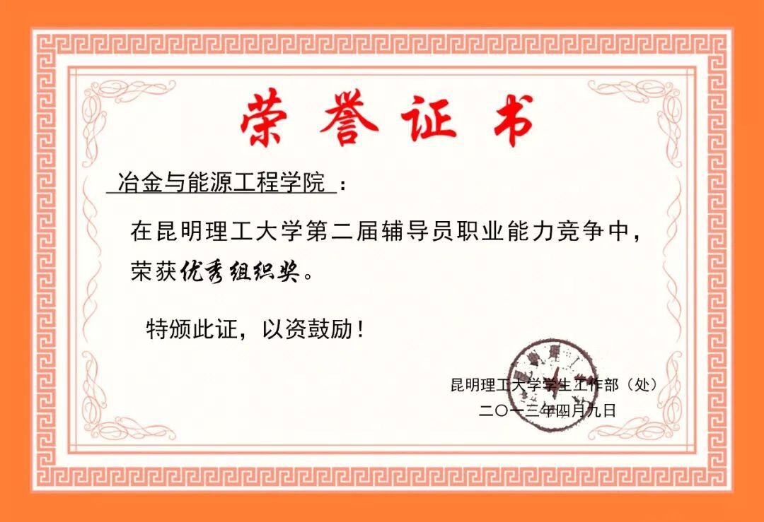 昆明理工大学第五届辅导员职业能力竞赛“优秀组织奖”