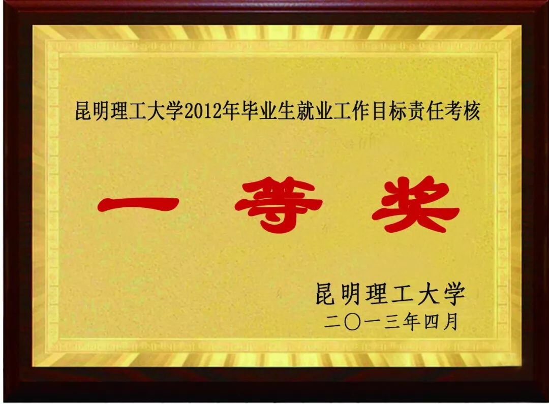 昆明理工大学2012年毕业生就业工作目标责任考核“一等奖”